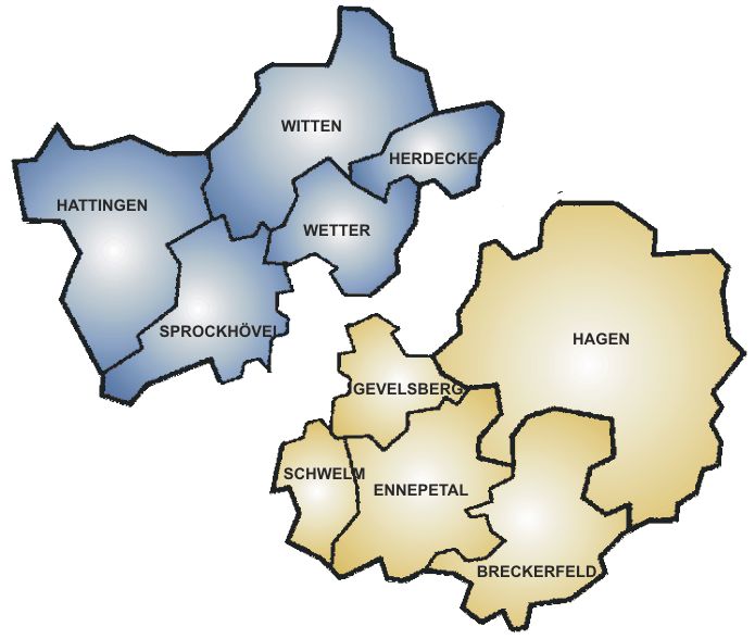 Breckerfeld, Ennepetal, Gevelsberg und Schwelm sowie die kreisfreie Stadt Hagen