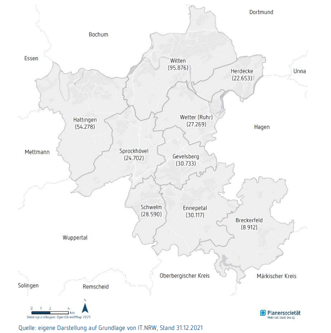 Der Ennepe-Ruhr-Kreis liegt am Rand der Metropole Ruhr. Er verbindet städtisch geprägte Orte wie Hattingen, Witten oder Schwelm mit ländlich geprägten Städten wie Breckerfeld oder Sprockhövel. Diese Mischung sorgt für unterschiedliche Anforderungen an die Mobilität.